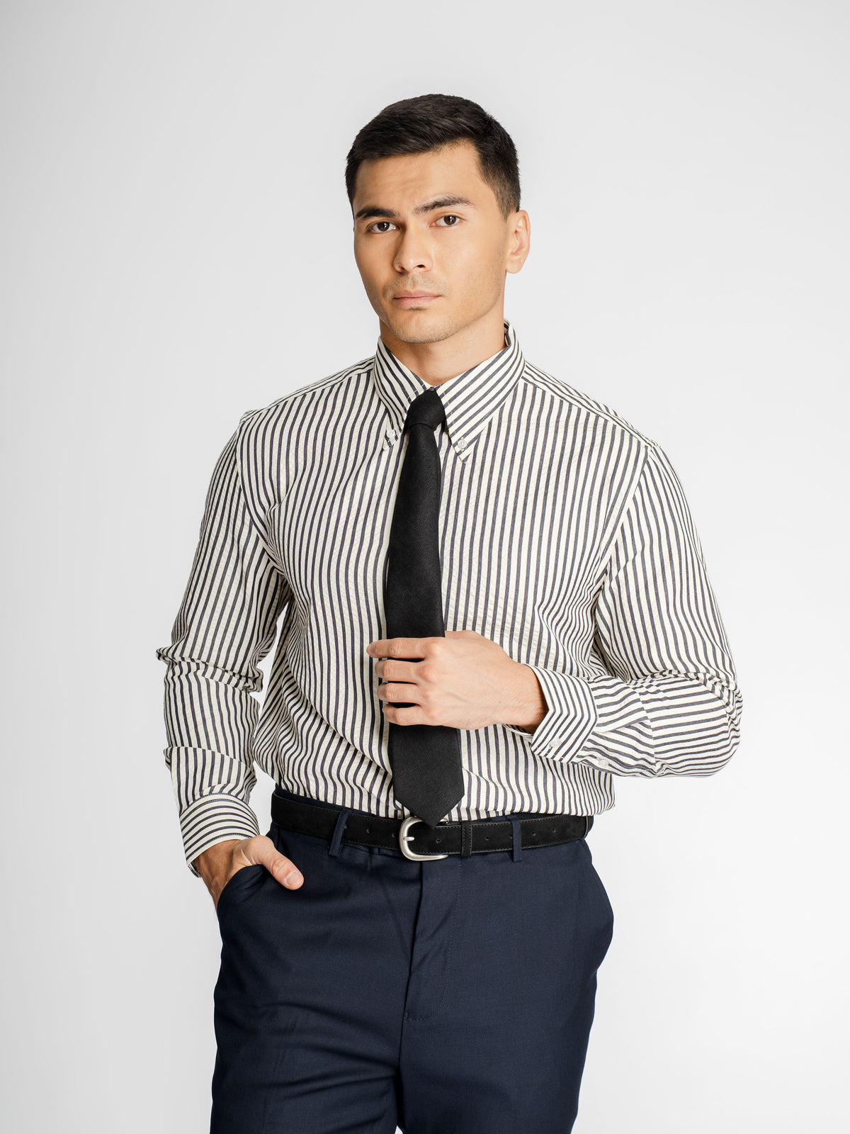 Trousers With Belt Loop - Jet Black Plain (Slim Straight)