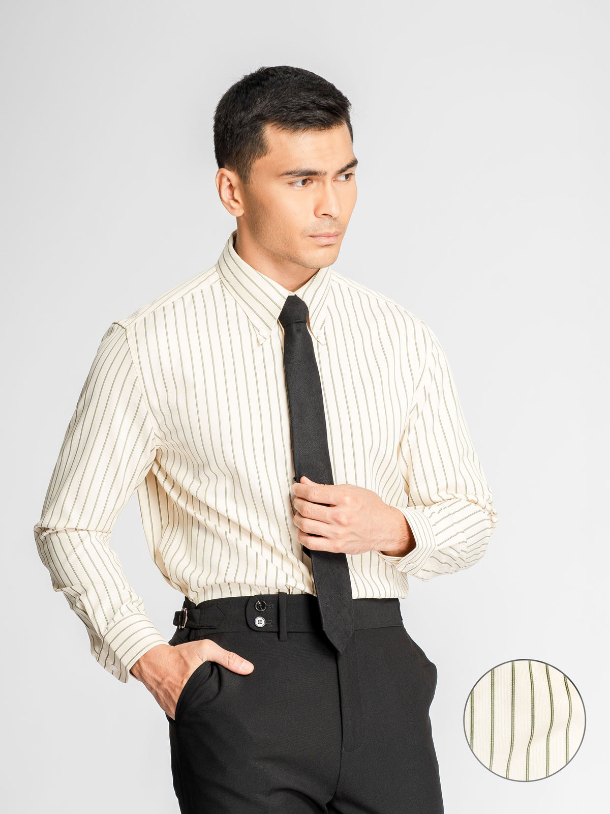 Marcello Stripe Shirt - Cream Green Stripe (Button-Down Collar)