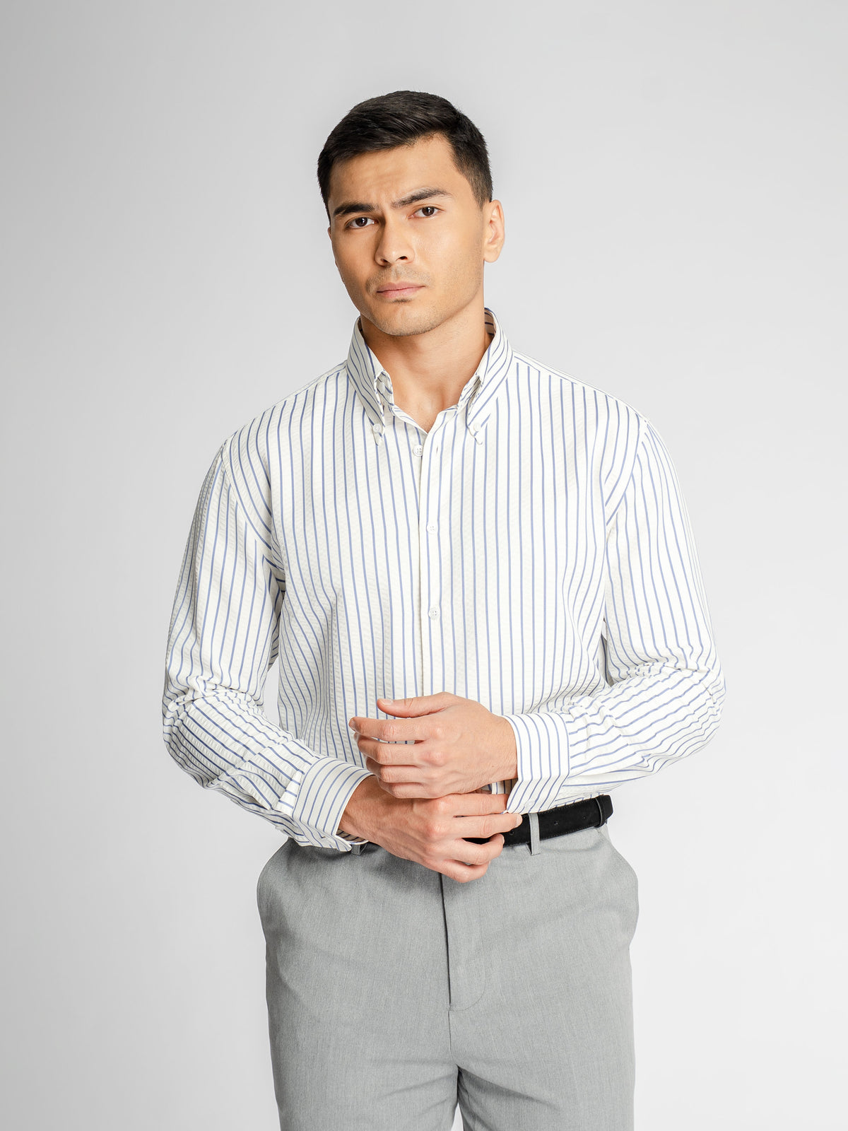 Marci Seersucker Shirt - White Blue Stripe (Button-Down Collar)