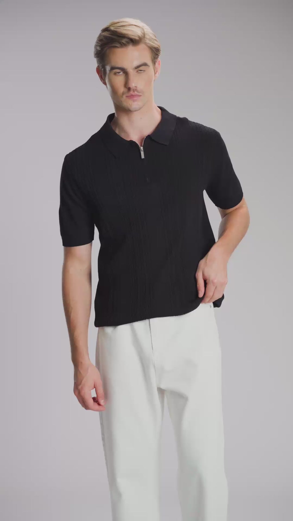 Renzo Knit Polo Tee - Black Quarter-Zip