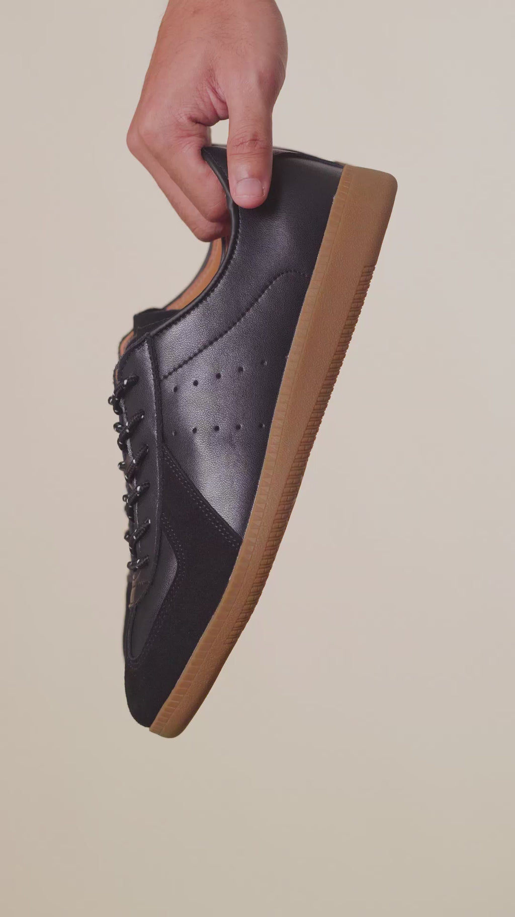 A modern take on the iconic German Army Trainer. Crafted with microfiber upper for a refined finish, microfiber lining for comfort, and a wood grain rubber outsole for grip and durability.